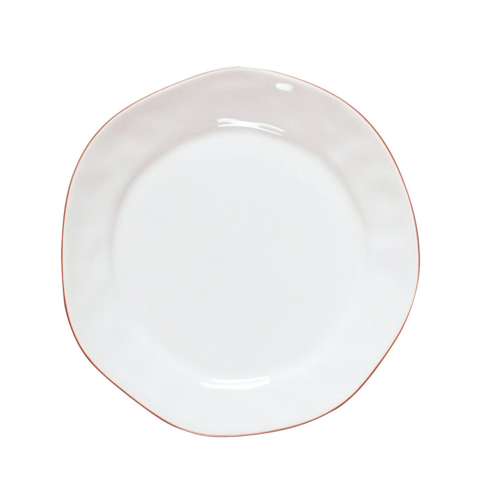 The edge of each piece in the Cantaria collection features a hand applied unique pantine, which means that no two pieces are exactly alike. This Cantaria 9" Salad Plate is just the right size for a fabulous luncheon or dessert plate. Handcrafted in Portugal of ceramic stoneware. Freezer, oven, microwave and dishwasher safe.